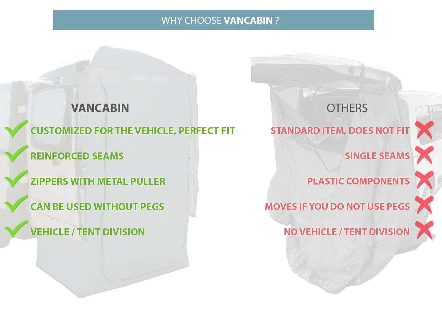 The sides of the cabin include a vertical velcro to fasten it to the frame of the rear compartment of your camper. We do not add the velcro to stick inside the vehicle so, you can choose the color that best suits the interior design of your camper van.