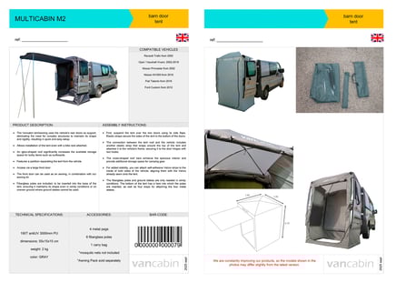 The MULTICABIN M2 rear tent has been designed for the PRIMASTAR, TRAFIC, VIVARO, TALENTO and NV300 DOUBLE REAR DOORS models.