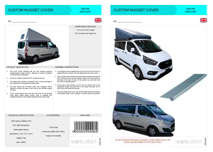 The Vancabin CUSTOM NUGGET elevating pop-top roof COVER has been designed exclusively for original roofs of the Ford Transit Custom Nugget SWB model.