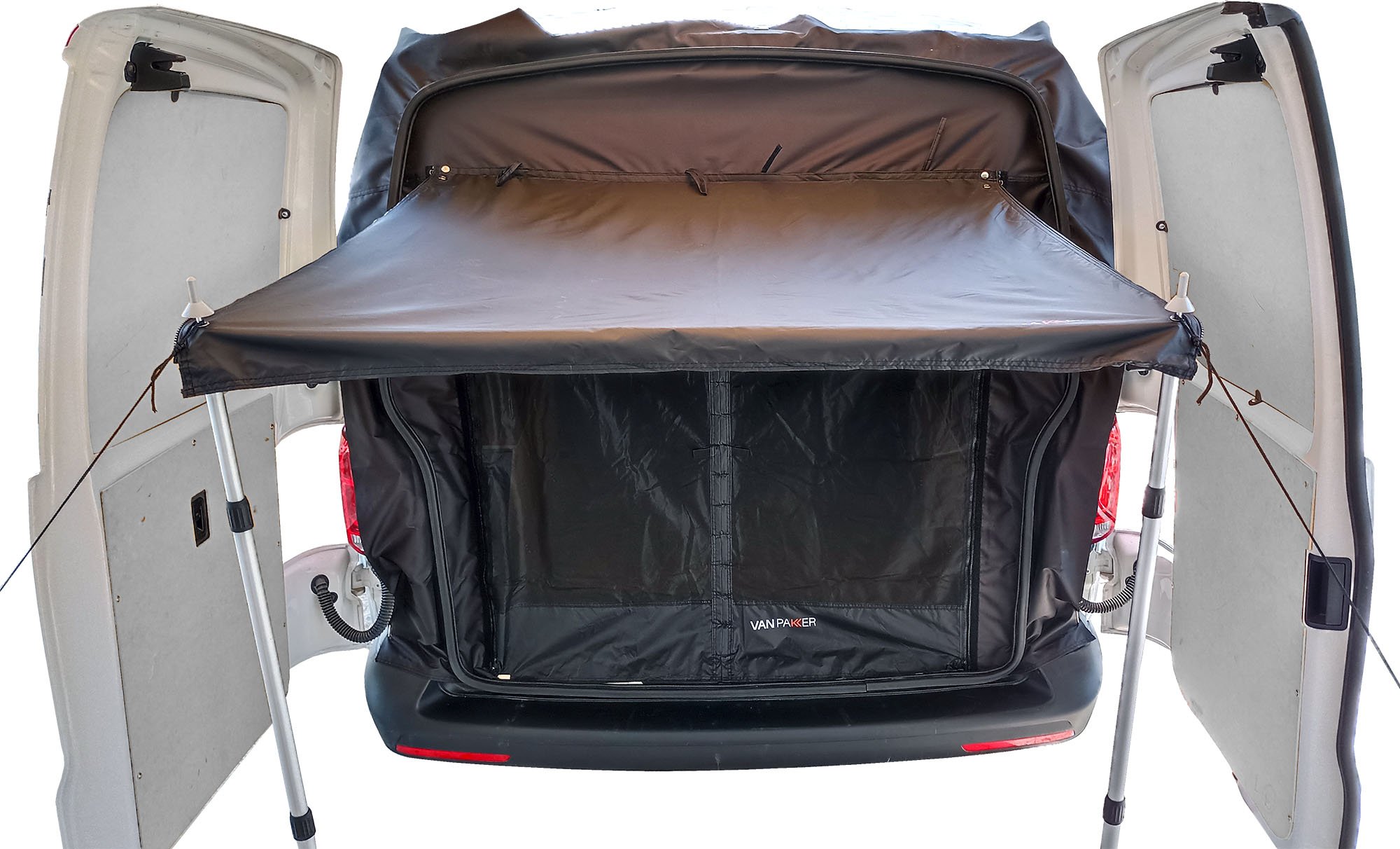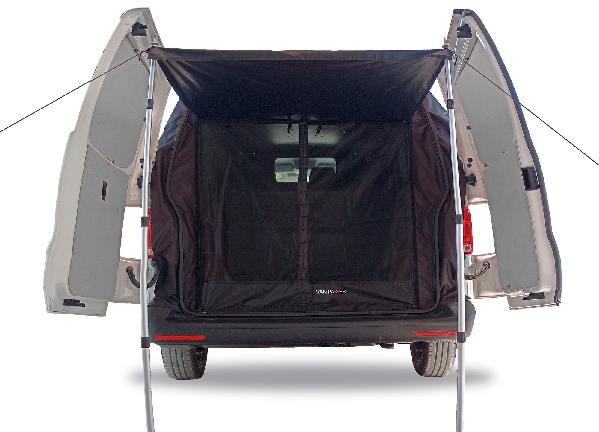 Mosquitera multifunción 4 en 1 (mosquitera, cortina de privacidad, toldo, aislante térmico) para el hueco del portón trasero. Apertura / cierre con imanes en vez de cremallera, para un uso mucho más cómodo y práctico.
