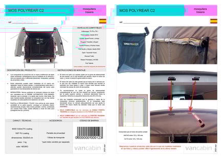 Esta mosquitera está confeccionada con tejido de poliéster de 40-42 gr/m2, muy ligera y resistente, permitiendo una perfecta ventilación del interior del vehículo. Es absolutamente impermeable, se lava muy fácil y no se arruga.