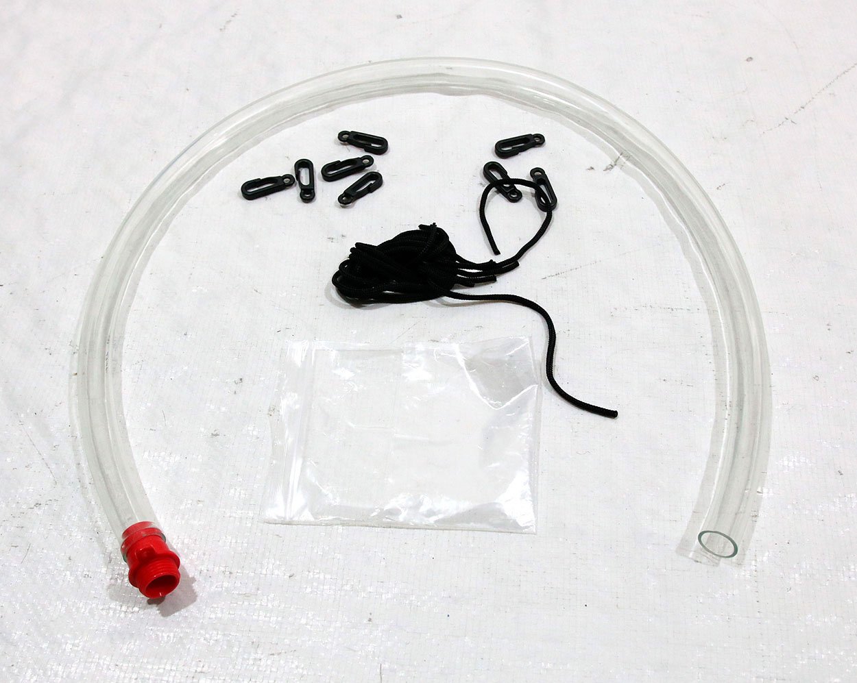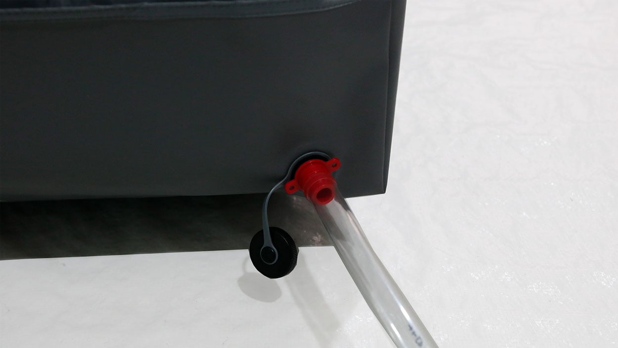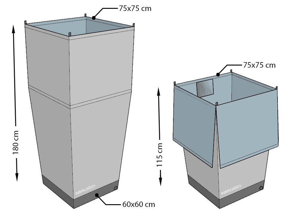 Prêt à l'emploi, avec cordes et crochets pour suspendre et tuyau de drainage.