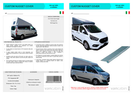 Il telo per tettI a soffietto rialzato Vancabin CUSTOM NUGGET COVER è stato disegnato esclusivamente per i tetti originali dei modelli Ford Custom Nugget SWB.