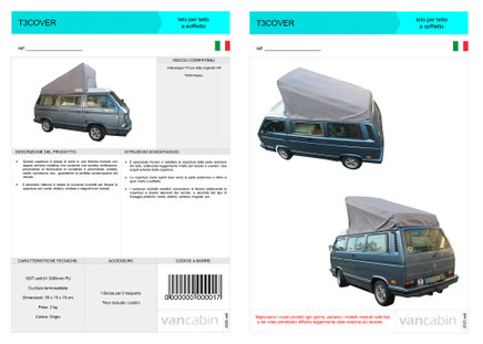 Il telo per tettI a soffietto rialzato Vancabin T3Cover è stato disegnato esclusivamente per i tetti originali dei modelli Volkswagen T3. Questo modello non è valido per i tetti dei marchi Reimo e SCA.