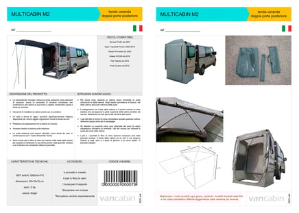 La cabina tenda posteriore MULTICABIN M2 è stata disegnata per i modelli PRIMASTAR, TRAFIC, VIVARO, TALENTO y NV300 con doppia porta posteriore.